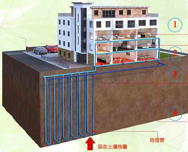 普通中央空調缺點在于天氣炎熱或者寒冷需要制冷量或熱量時效率反而下降。地溫一年四季基本恒定在14度左右,略高于地區平均溫度1-2度,使得熱泵無論在制冷或制熱工況中均處于穩定運行狀態。